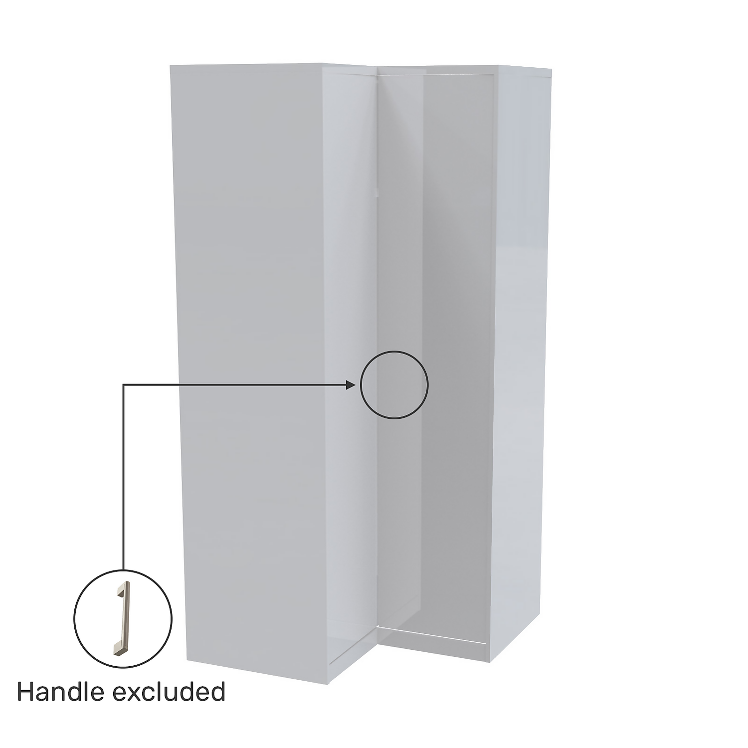 The House Beautiful range is exclusive to Homebase and offers a selection of different finishes and storage configurations to suit your needs. With a range of carcass colours and contrasting door designs, you can select the look to fit your bedroom aesthetic. The House Beautiful range now includes the fully fitted look with this combination pack which includes the wardrobe, end panels, plinth and cornice, meaning you can complete your bedroom with a luxury look. Coordinating chests of drawers are also available separately. This corner wardrobe (1 x double unit and corner conversion) features an oak effect carcass and beautiful luxe gloss white slab doors. The wardrobe features premium soft close clip-on Blum hinges, five shelves and a hanging rail. You can customise your wardrobe with our additional internal storage options (available separately) including internal drawers, shelves, dividing shelves and extra hanging rails. Choose your handles from our range of both traditional and modern to suit your desired look.