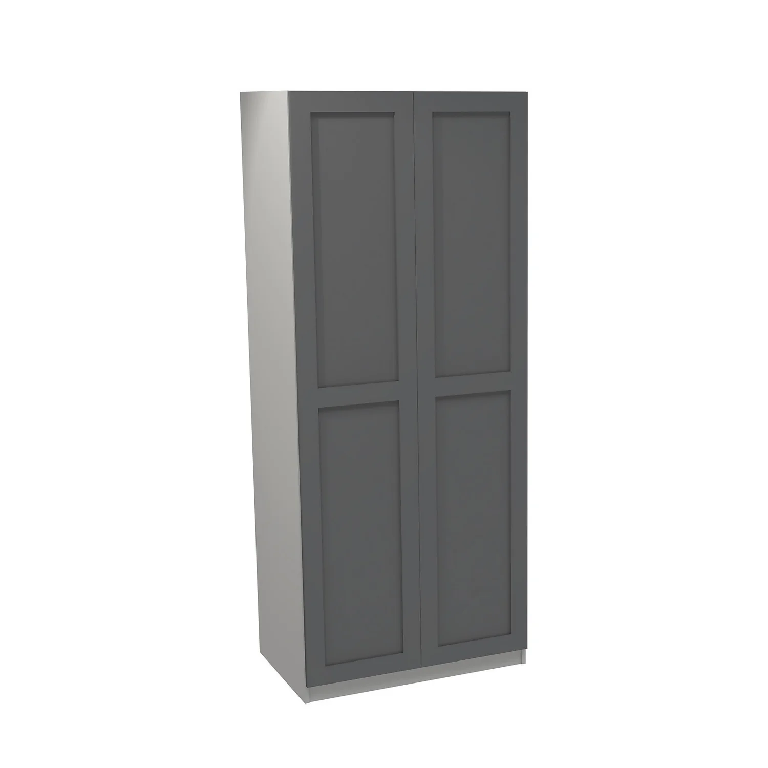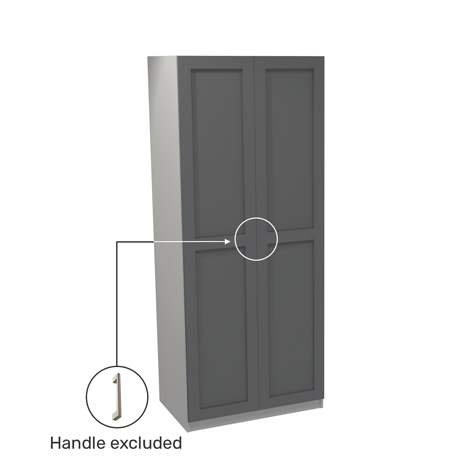 The House Beautiful range is exclusive to Homebase and offers a selection of different finishes and storage configurations to suit your needs. With a range of carcass colours and contrasting door designs, you can select the look to fit your bedroom aesthetic. This double wardrobe features a grey carcass and beautiful shaker doors finished in a luxurious matt carbon grey. The wardrobe features premium soft close Blum hinges, a shelf and a hanging rail. You can customise your wardrobe with our additional internal storage options (available separately) including internal drawers, shelves, dividing shelves and extra hanging rails. Choose your handles from our range of both traditional and modern to suit your desired look.