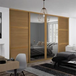 Shaker 4 Door Sliding Wardrobe Kit Oak Panel / Mirror With Oak Frame (W)2290 X (H)2260mm