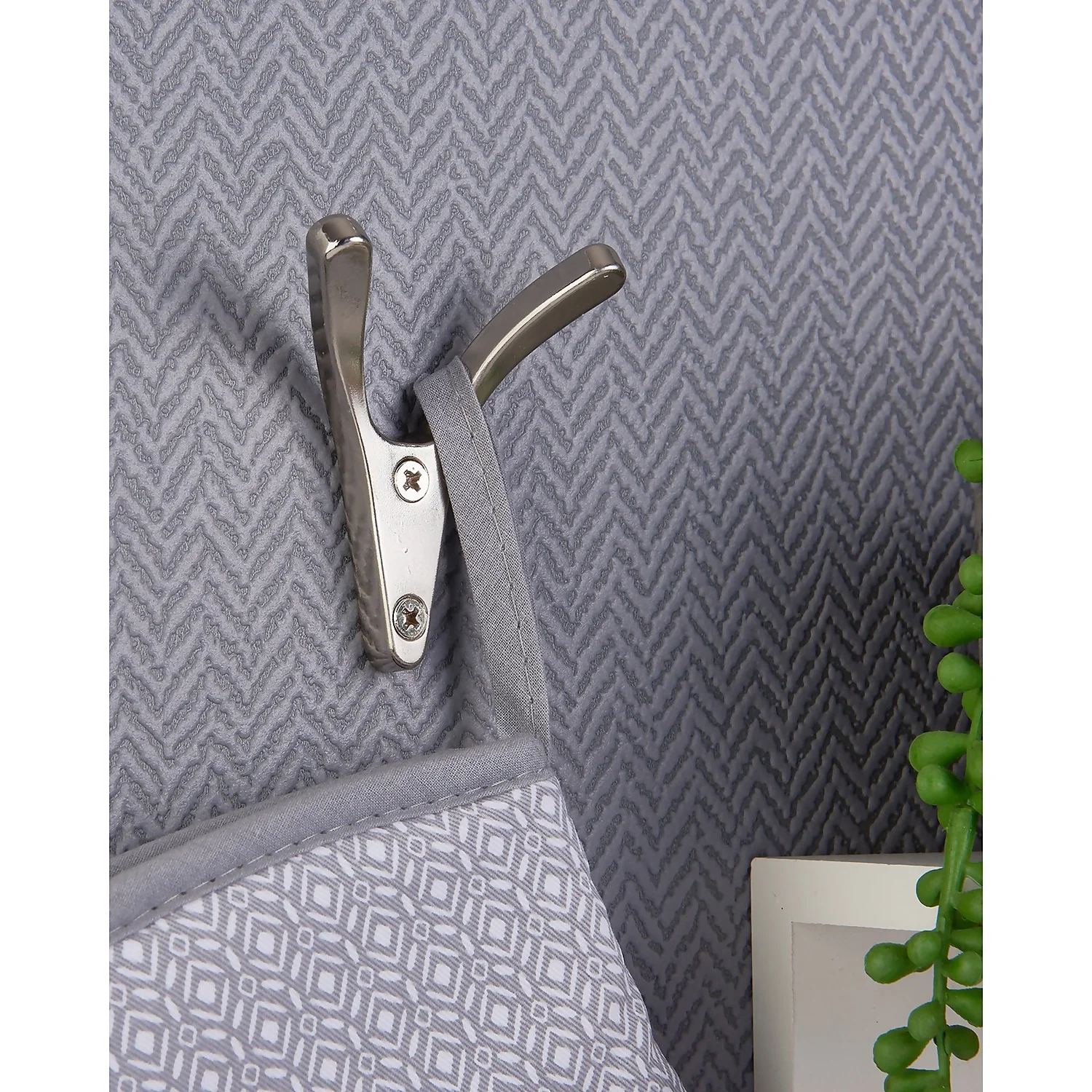 Maximise your home space with this attractive designer twin hook in satin nickel finish.