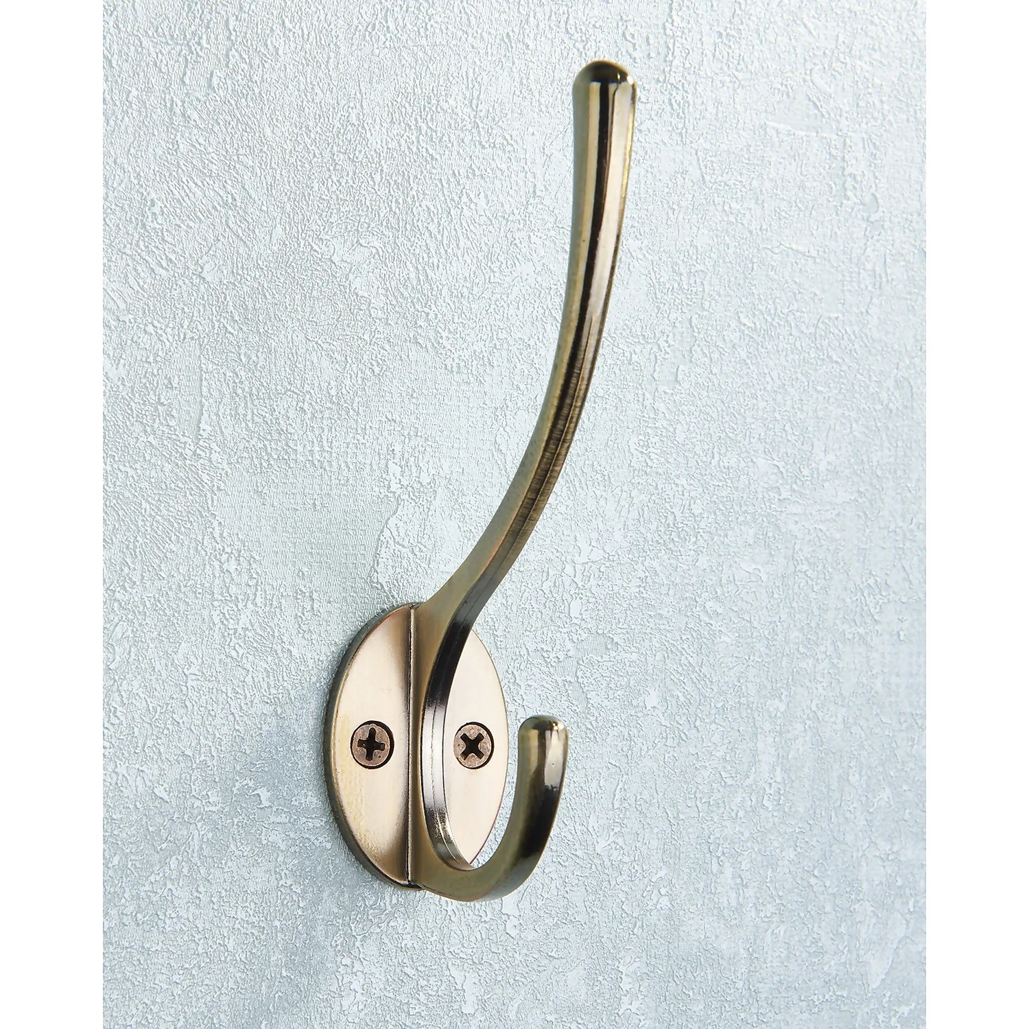 Victorian style double hook in a fashionable antique brass finish.